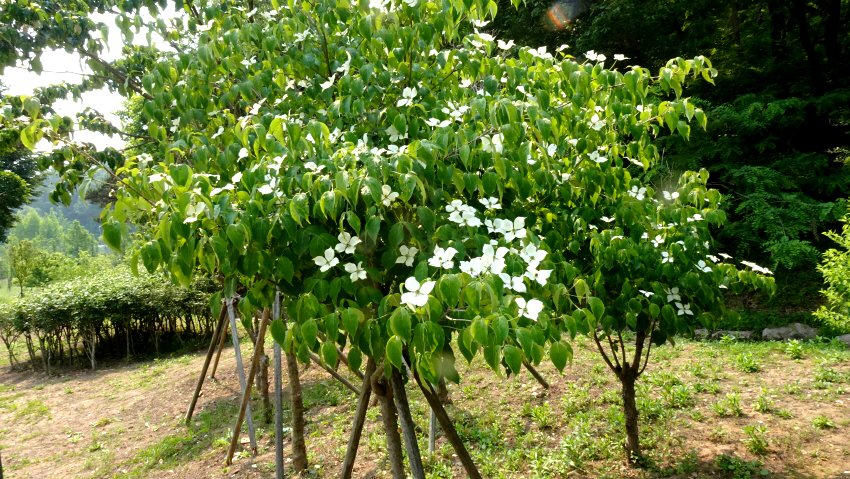 <사진 14> 심은 산딸나무가 꽃을 피웠다.